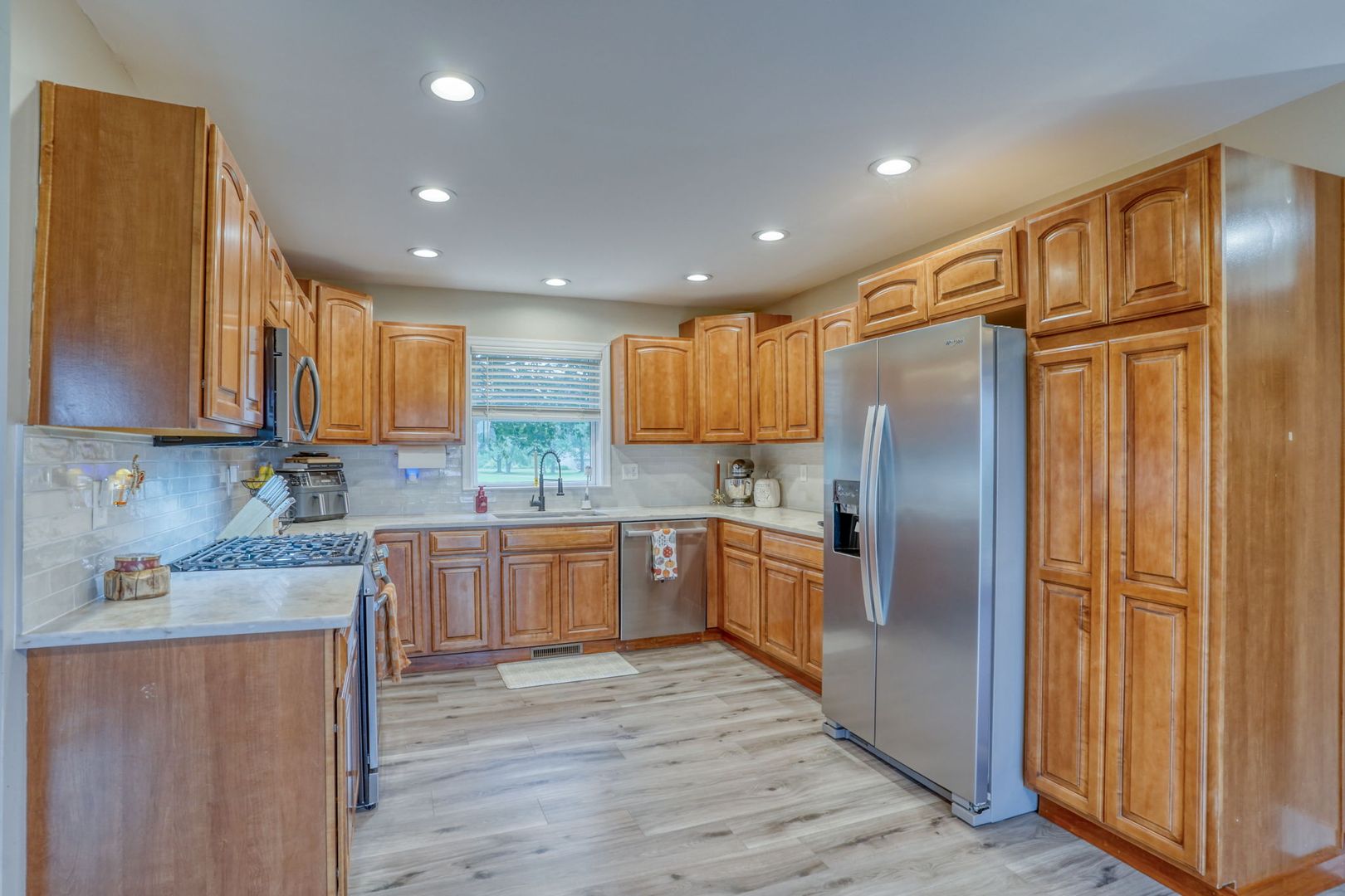 Just What You Have Been Looking For a Single Family Ranch in a Quaint Country Setting. With a Large Detached Garage and Fully Fenced in Yard. This home shows exceptionally well with all the updates, beautiful Premium plank flooring throughout, All-New 2-Tone Paint, an Over-sized Eat-in Kitchen with plenty of Updated Kitchen Cabinets, Counter Tops, and tile back-splash, including a Full Set of Stainless Steel Appliances. French glass door opens to the rear deck for extra space and easy entertaining. The home also features 3 Bedrooms, there is a Master Suite with a Private En-Suite Master Bath and a Walk-In Closet. The 2nd bedroom is updated with a wood wainscoted accent wall, there is a 3rd bedroom and a laundry room. Don't miss out on this wonderful opportunity to own this Recently Remodeled home. This great country property is tucked away from the hustle & bustle of everyday life, yet close enough to schools, parks, hospitals, shopping, and restaurants. Put this home on your tour today. Make this house YOUR NEW HOME!