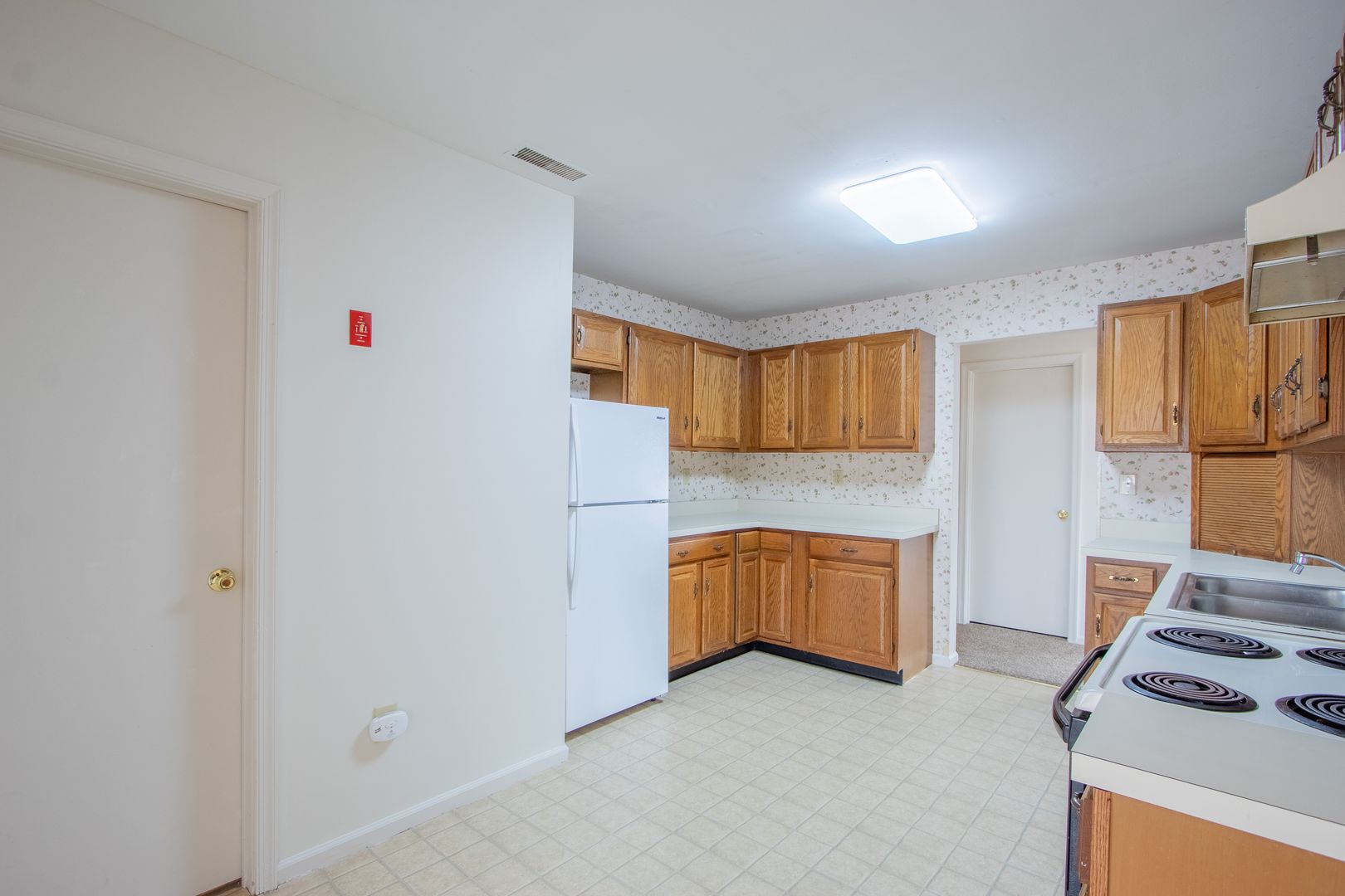 Inside, you will find cozy carpeted rooms and a functional kitchen equipped with a stove, refrigerator, and dishwasher. The home also includes a convenient laundry room to simplify your daily routine.